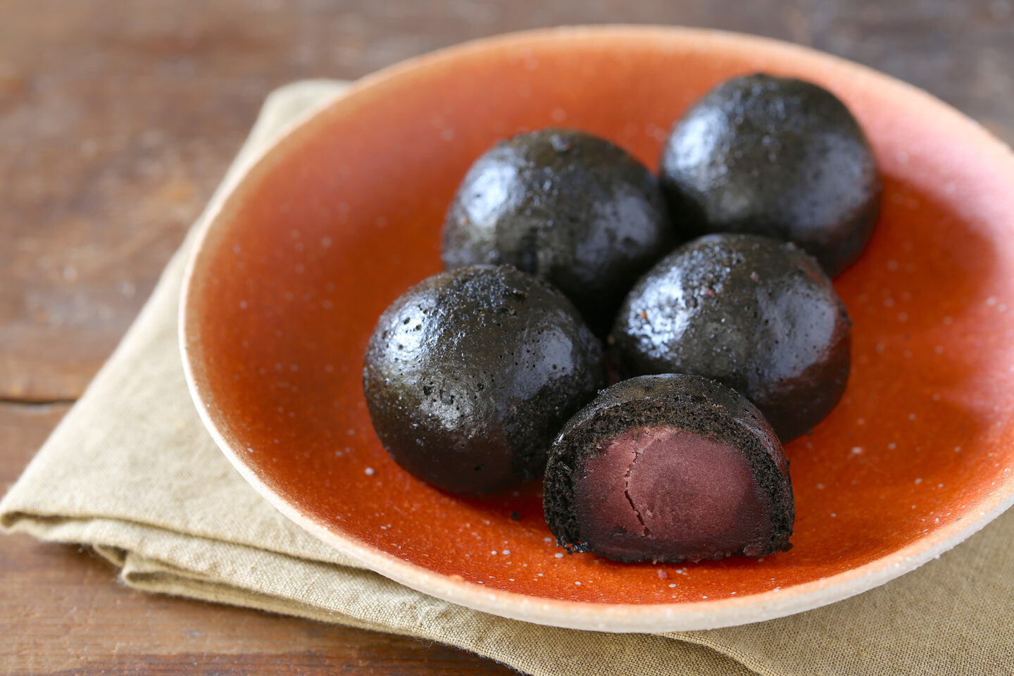 看板商品の「黒かりん」は、サクサク食感の皮の中に自家製のしっとりこし餡がたっぷりと入った、かりんとうまんじゅう。 黒船来航の地、横須賀にちなんで大砲の弾をイメージしました。 インパクト抜群なお菓子です。